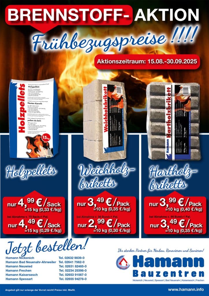 Ganz gleich, wie Du heizt. Wichtig ist, dass Du rechtzeitig den richtigen Brennstoff zu Verfügung hast. Wir liefern zuverlässig und pünktlich. Bei uns kannst Du Holzbrennstoffe [Pellets, Holzbriketts und Kaminholz], Kohlebrennstoffe [Braunkohlebriketts] oder Heizöl beziehen.